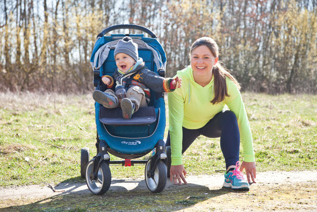 Die Babys finden es meist sehr unterhaltsam wenn Mama trainiert, können in die Übungen mit einbezogen werden oder einfach frei auf Entdeckungstour gehen.